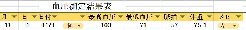 今日の血圧と体重の測定結果 |